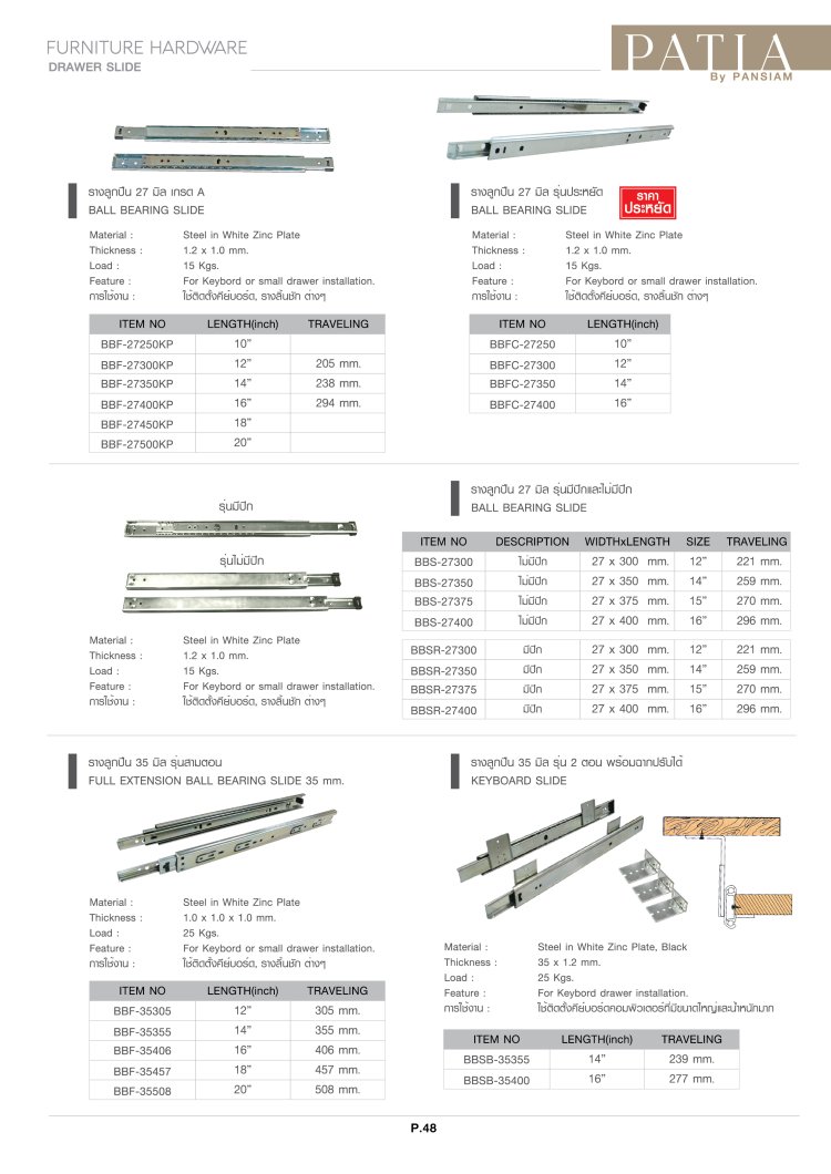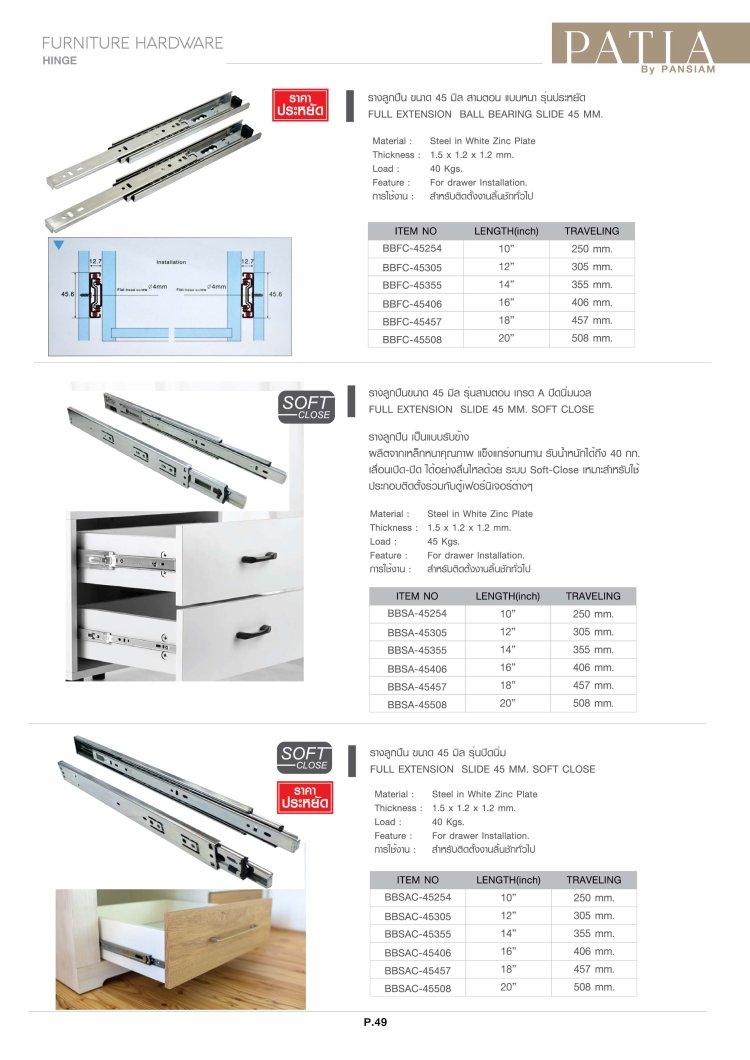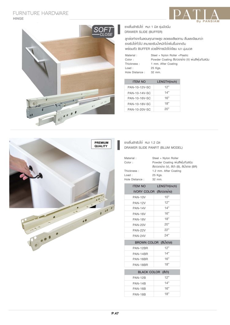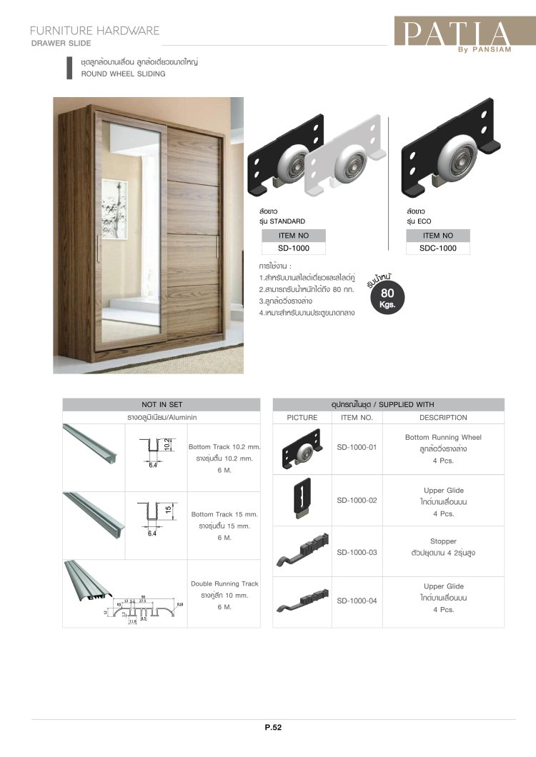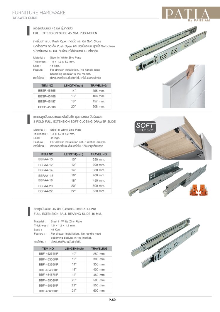 แข็งแรง ลื่นไหล เปิด-ปิดนุ่มนวล รองรับน้ำหนักได้เยอะ ทนทานต่อการใช้งานทุกวัน