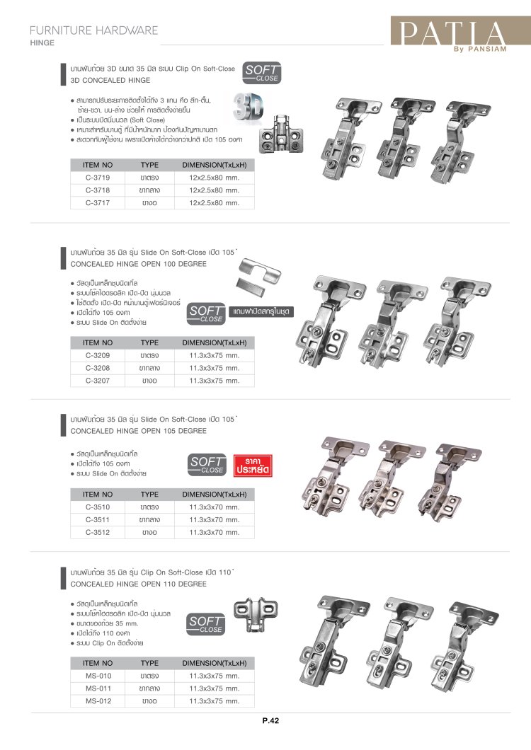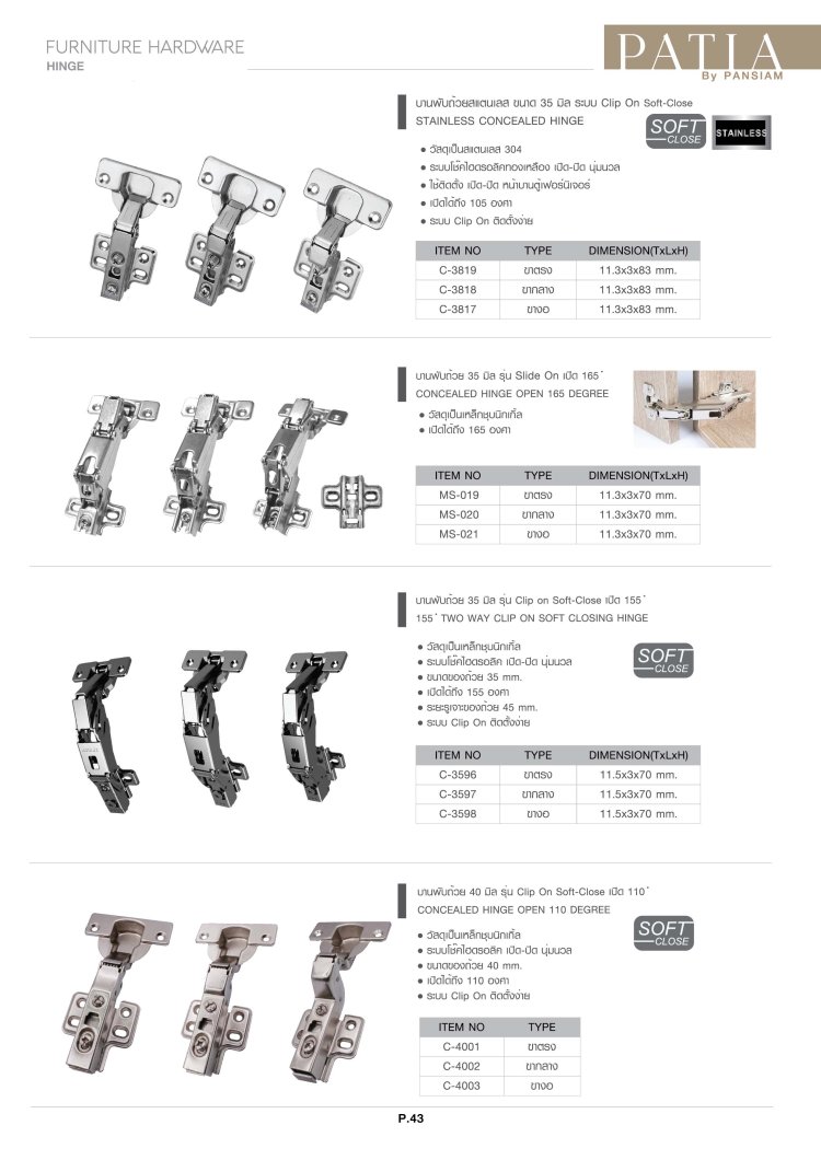 บานพับถ้วยคุณภาพสูง เปิด-ปิดนุ่มนวล ไม่มีสะดุด ติดตั้งง่าย ปรับระดับได้ตามต้องการ
