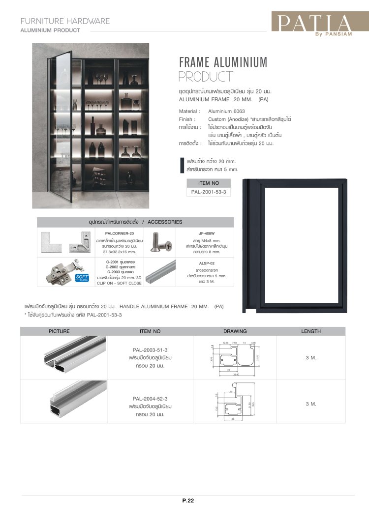 ชุดอุปกรณ์บานเฟรมอลูมิเนียม 20 มม.
