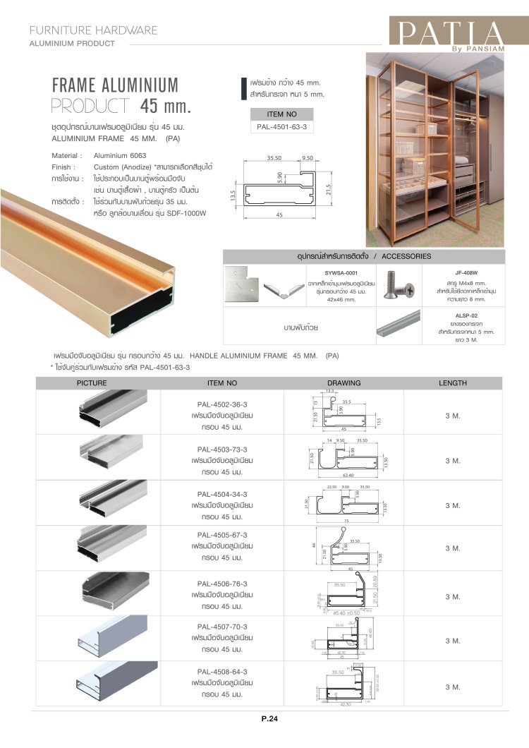 ชุดอุปกรณ์บานเฟรมอลูมิเนียม 45 มม.