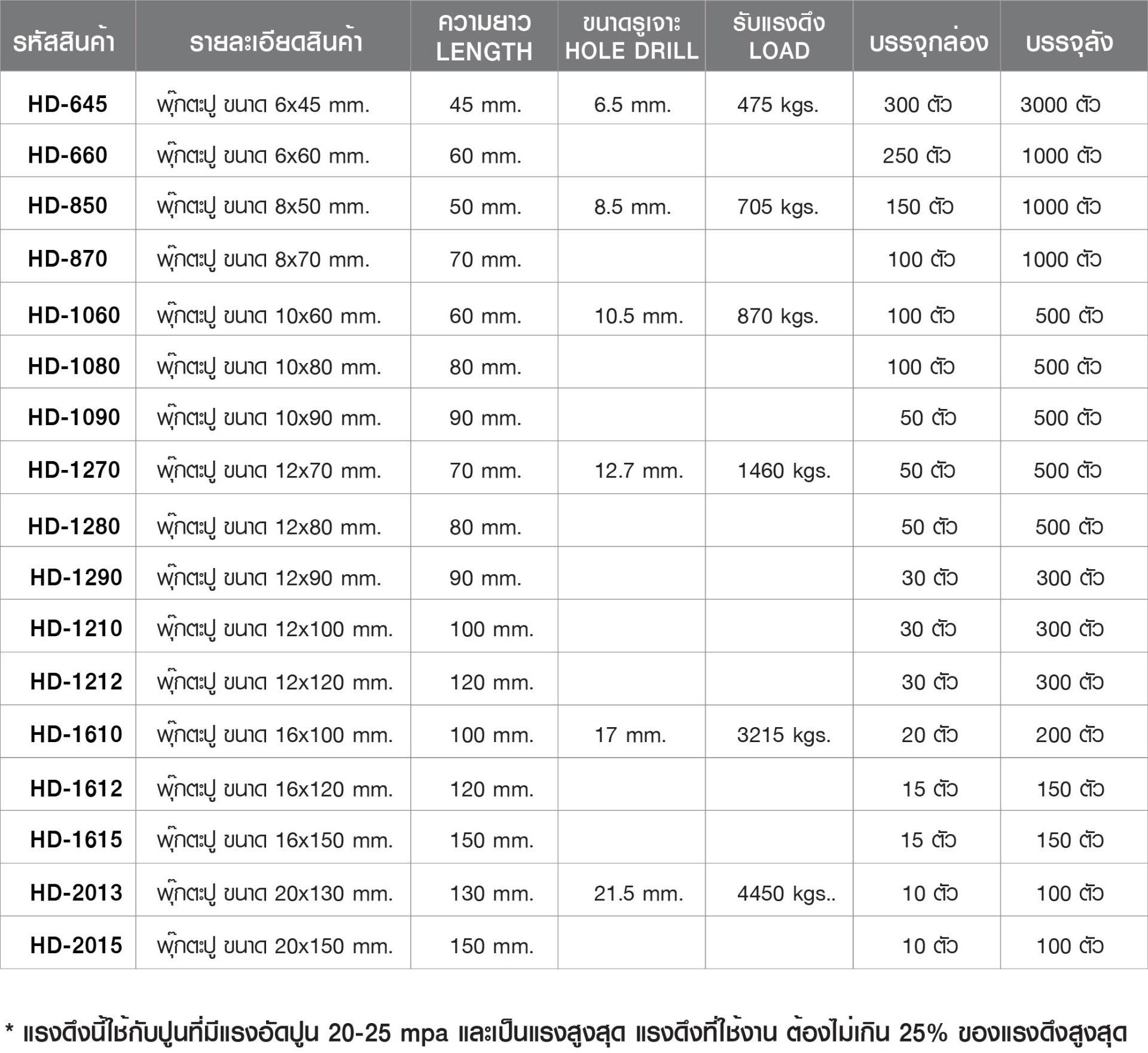 รับนํ้าหนักได้สูงเหมาะสําหรับการติดตั้งงานทั่วไป งานยึดเครื่องจักร หรืองานยึดวัตุขนาดใหญ่ที่เคลื่อนย้ายลําบาก เช่น งานโครงสร้าง งานชั้นวางสินค้า ที่ต้องวางแบบก่อนถึงจะติดตั้งกับพื้นคอนกรีตทีหลังเป็นต้น