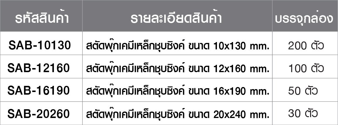 • ตัวนํ้ายาในพุ๊กเคมีสามารถป้องกันการเกิดสนิมกับตัวสตัดได้ดีอีกด้วย