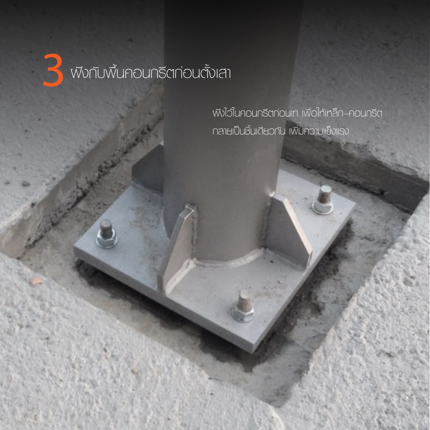 3) ฝังกับพื้นคอนกรีตก่อนตั้งเสา