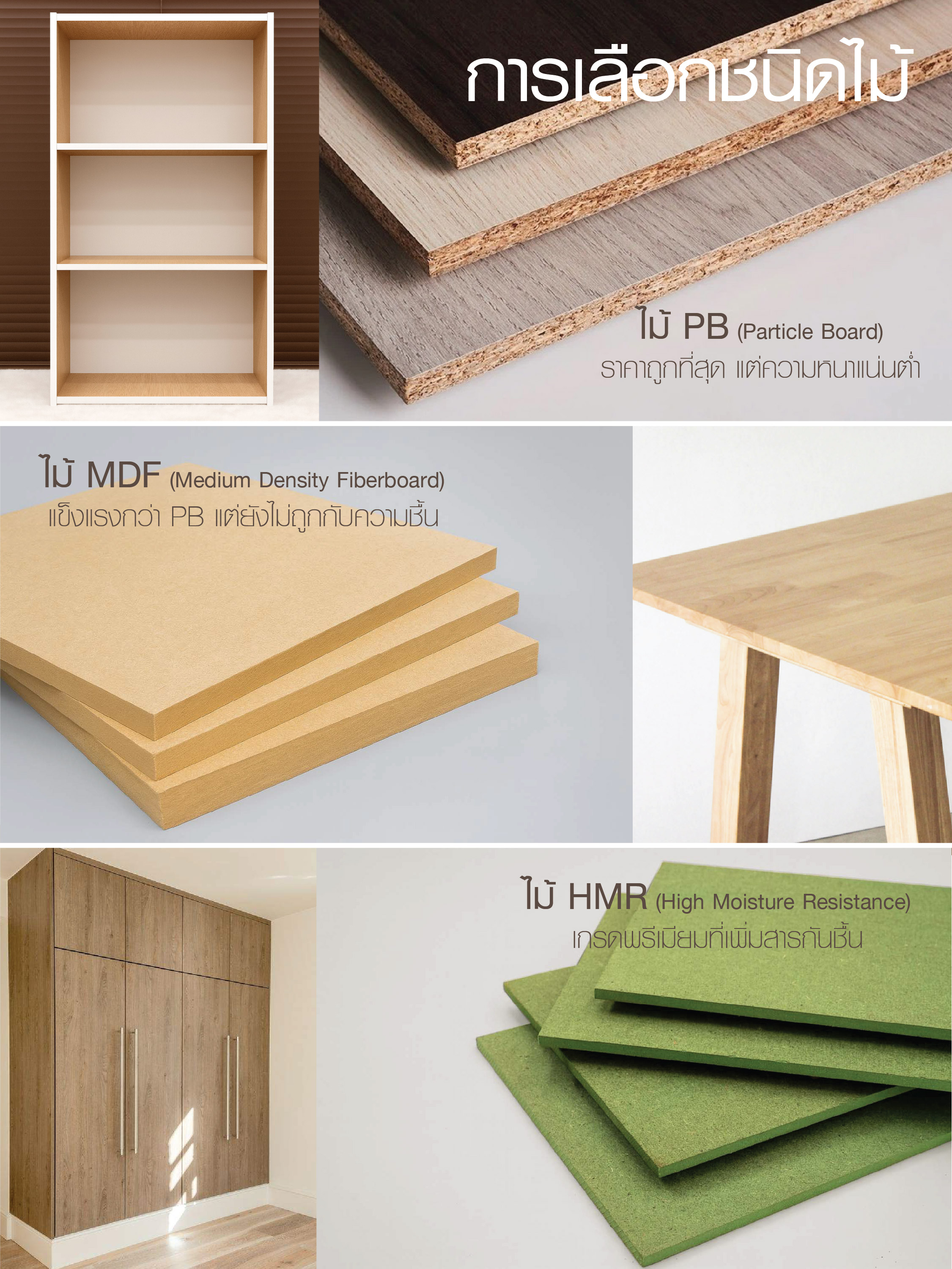 1. ไม้ PB vs HMR vs MDF ต่างกันยังไง เลือกผิดเหนื่อยแน่นอน