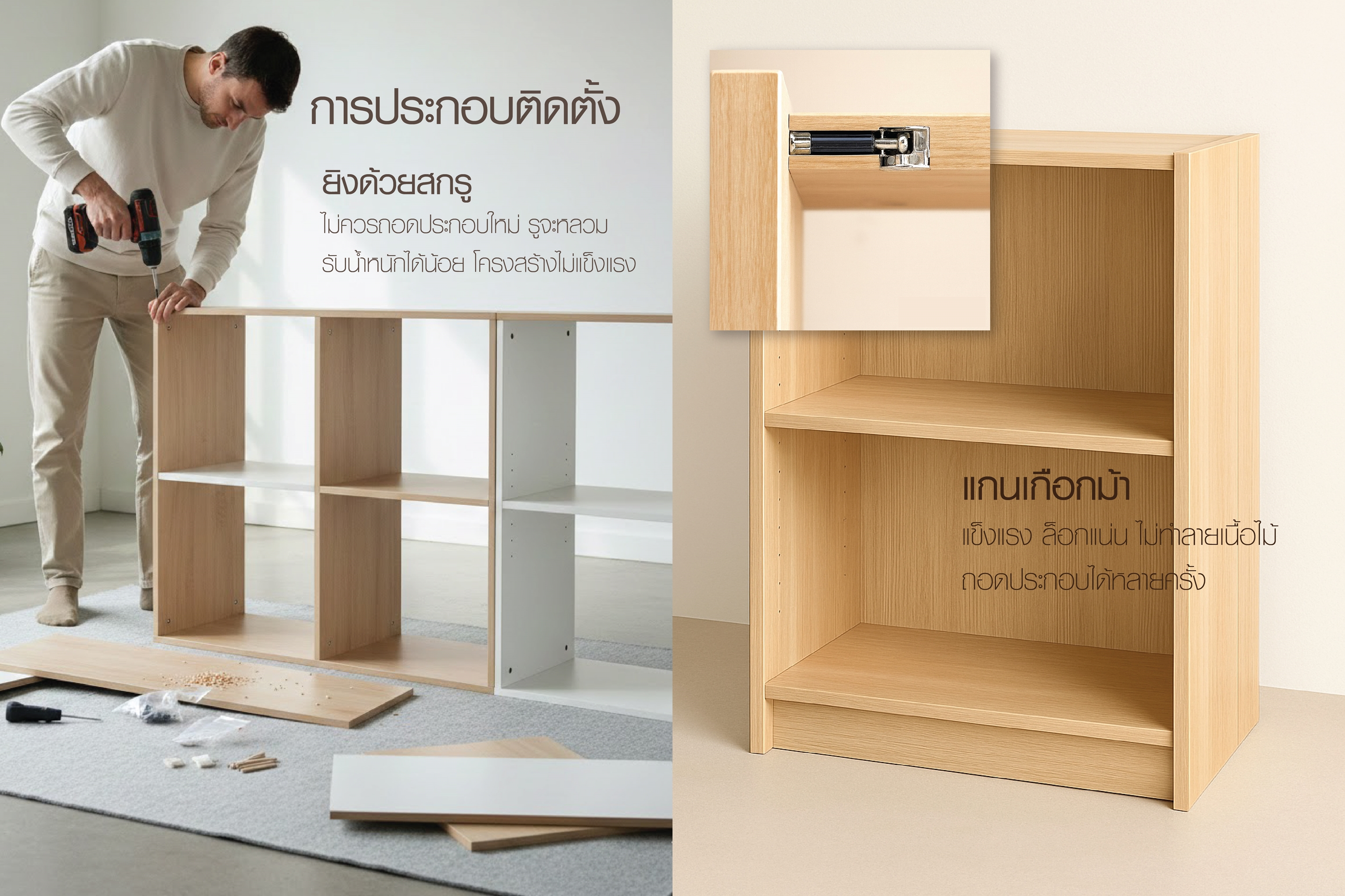 – แข็งแรง ล็อกแน่น ไม่ทำลายเนื้อไม้