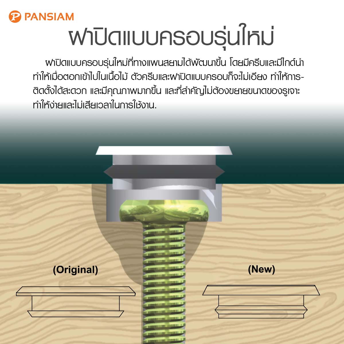 ฝาปิดแบบครอบรุ่นใหม่นี้จะเจาะไม้ตามขนาดที่กำหนด โดยไม่ต้องเจาะรูเกินหรือเพิ่มขนาดของรูเจาะ