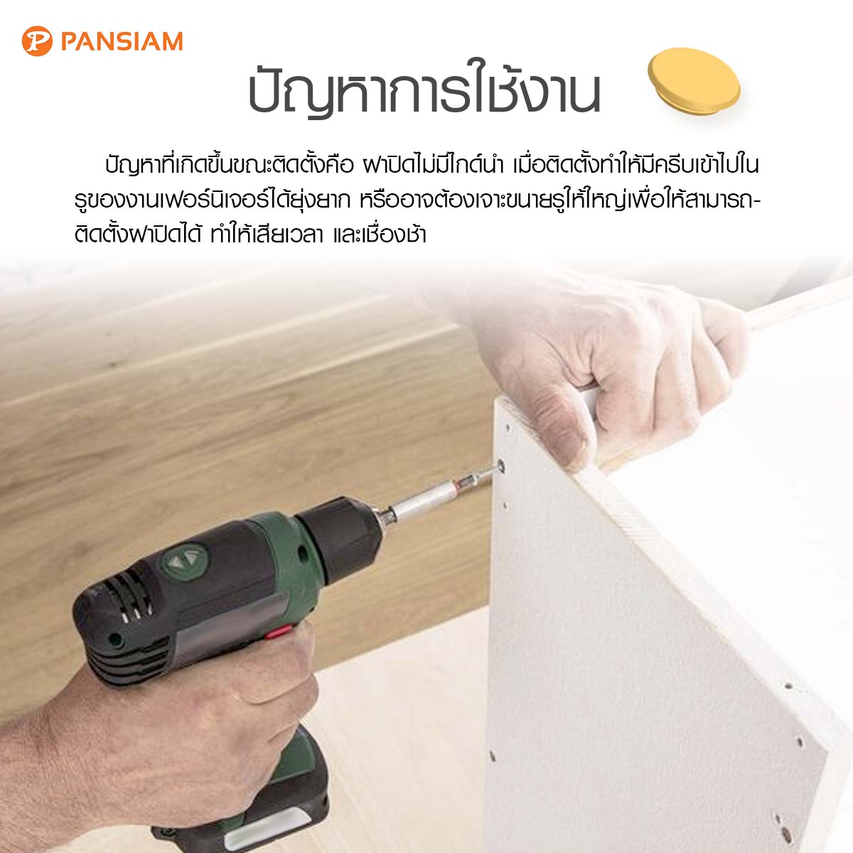 ปัญหาที่เกิดขึ้นขณะติดตั้งคือ เมื่อไม่มีไกด์ เมื่อติดตั้งทำให้มีครีบเข้าไปในรูของงานเฟอร์นิเจอร์ได้ง่าย