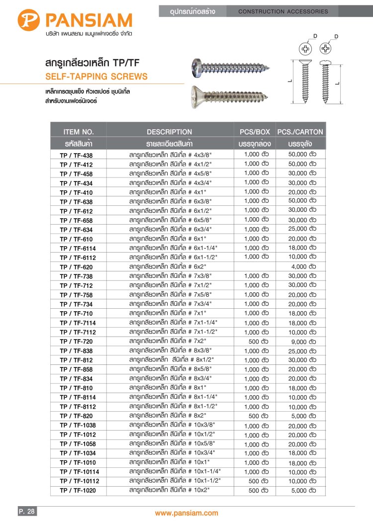 สกรูเกลียวเหล็ก TP-TG