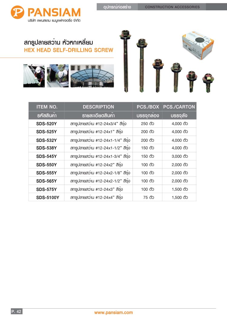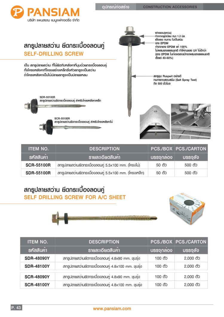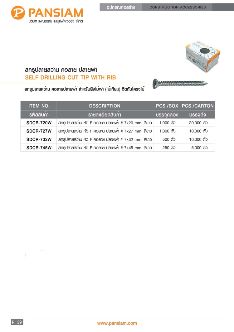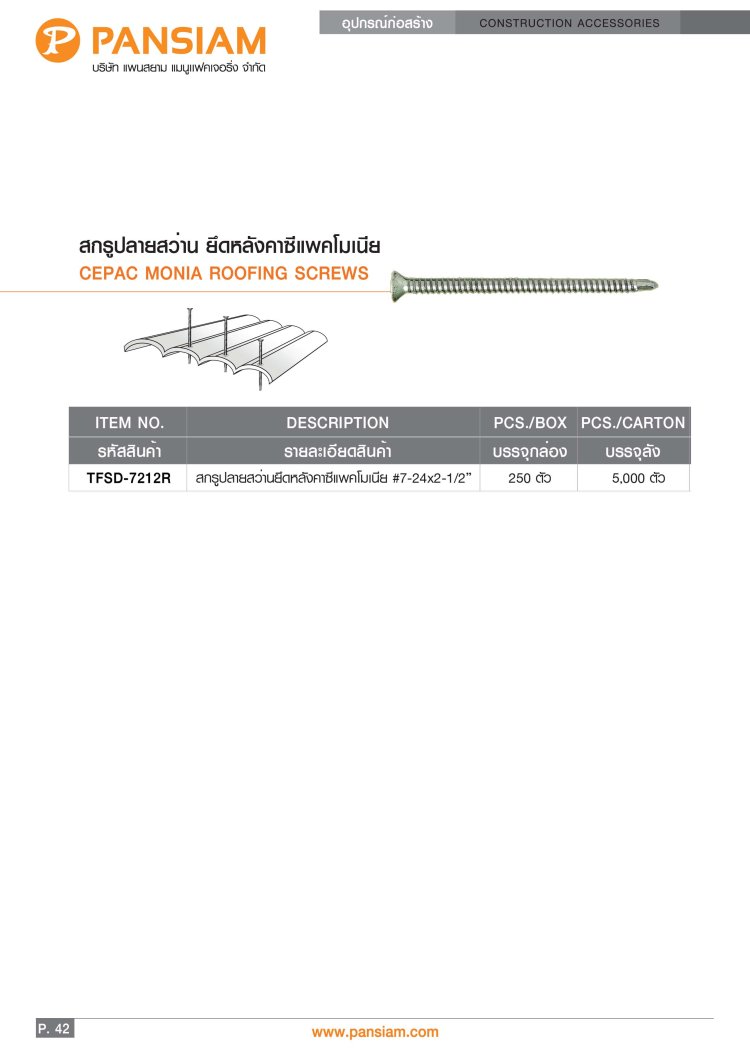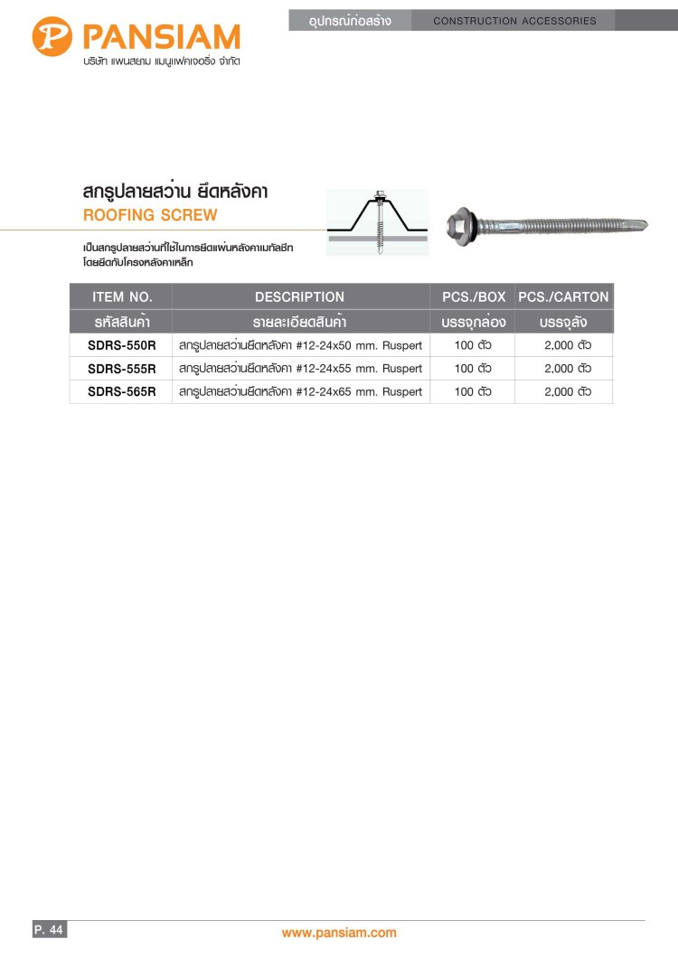 สกรูปลายสว่าน ยึดหลังคาซีแพคโมเนีย