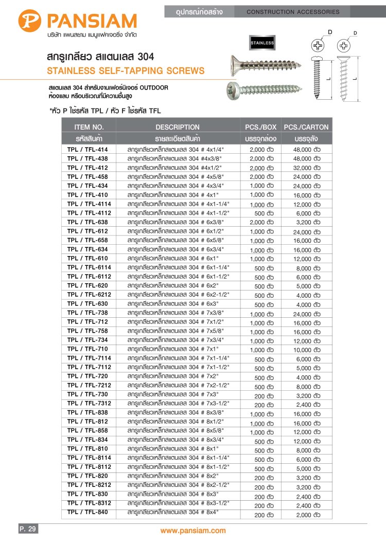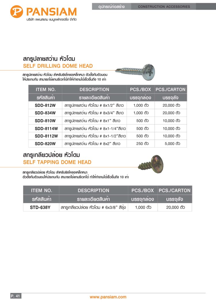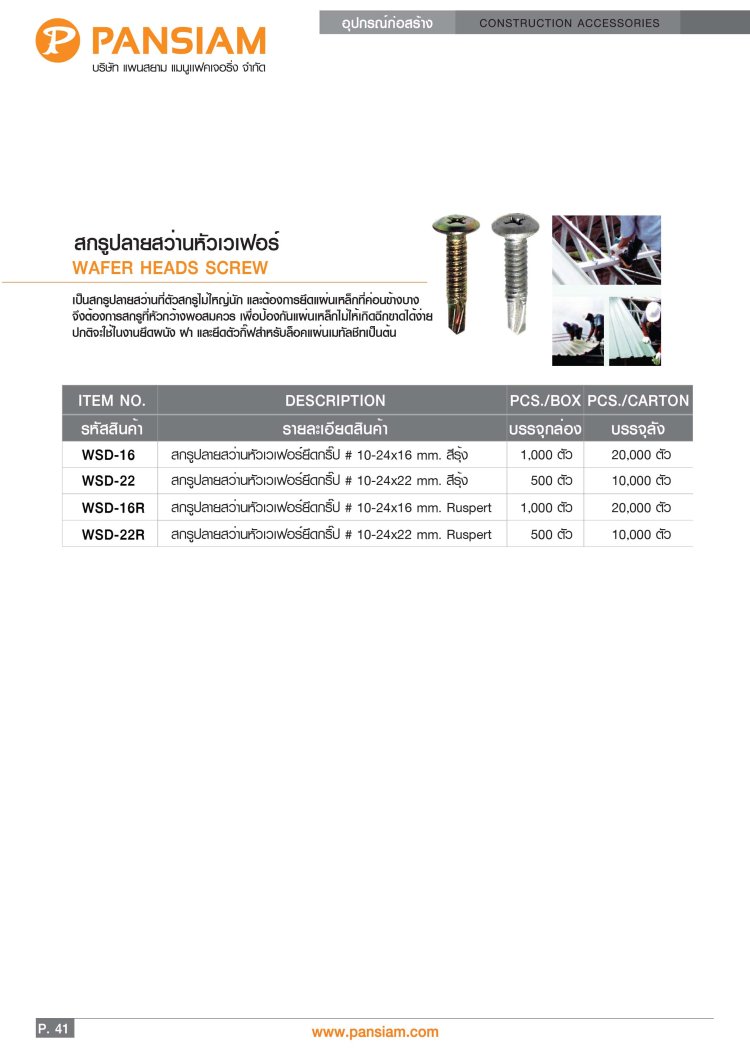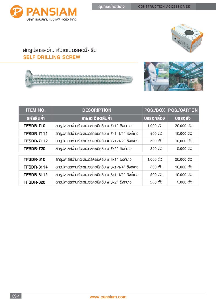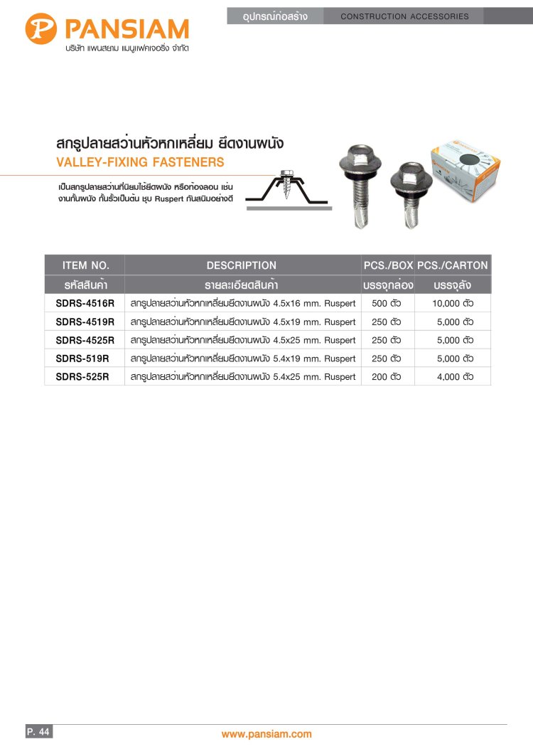 สกรูปลายสว่าน ยึดหลังคาซีแพคโมเนีย