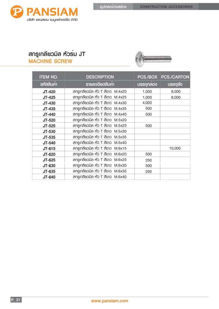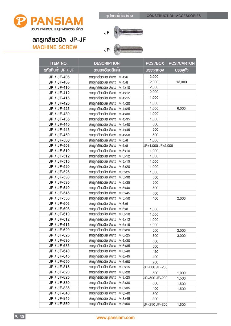 สกรูเกลียวมิล JP-JF