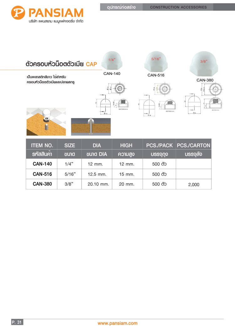 ช่วยปกป้องหัวสกรูจากสนิม ยืดอายุการใช้งานยาวนาน
