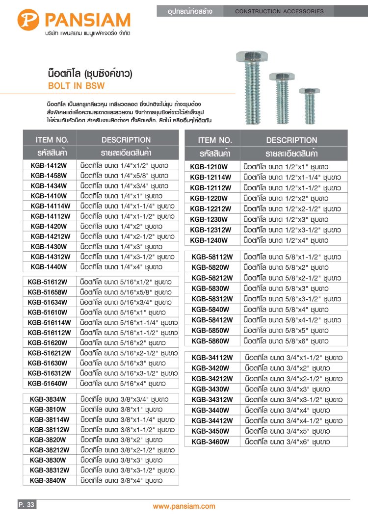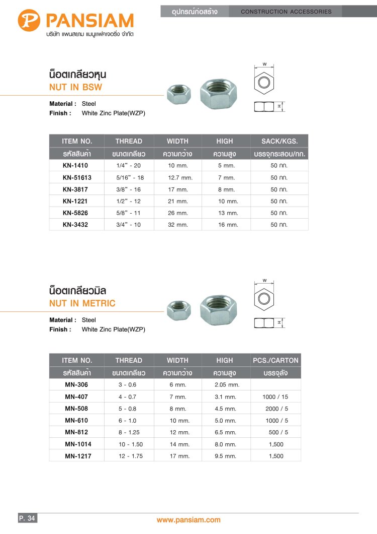 น็อตกิโล ชุบซิงค์ขาว