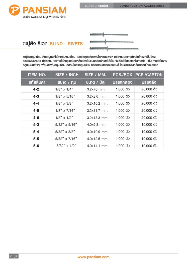สำหรับยิงอลูมิเนียม โลหะบาง แข็งแรง ยึดแน่น