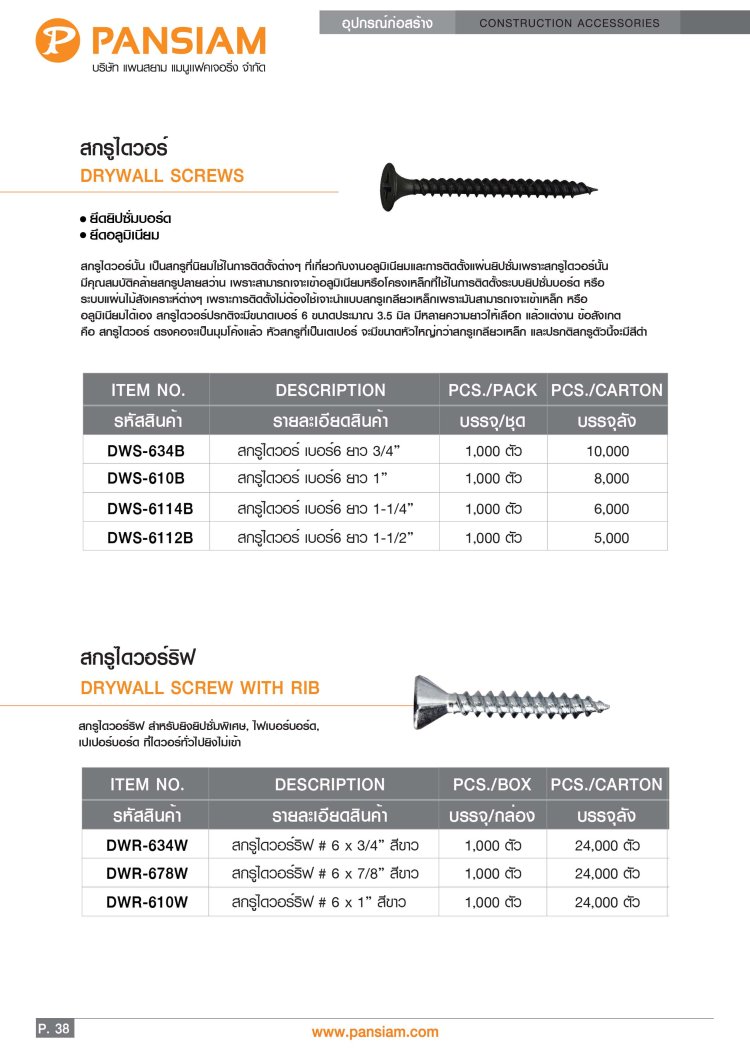 แข็งแรง เจาะง่าย ยึดแน่นกับยิปซั่มบอร์ดและโครงโลหะ