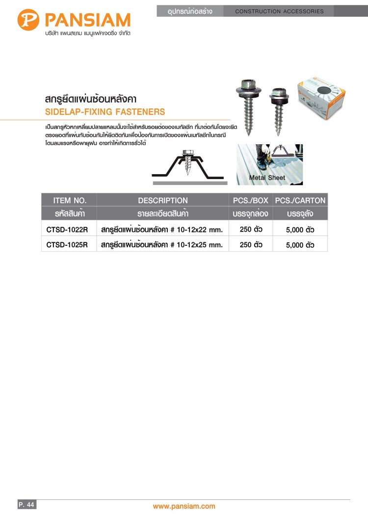 ใช้ยึดหลังคาเมทัลชีท กับโครงหลังคา